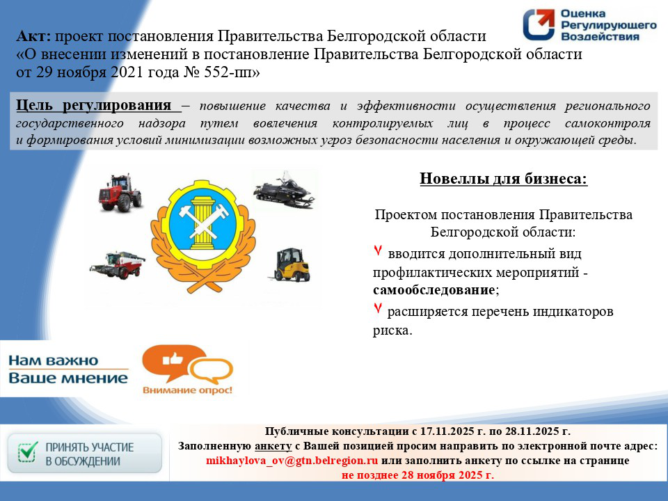 Оценка регулирующего воздействия проекта постановления Правительства Белгородской области «О внесении изменений в постановление Правительства Белгородской области от 29 ноября 2021 года № 552-пп.