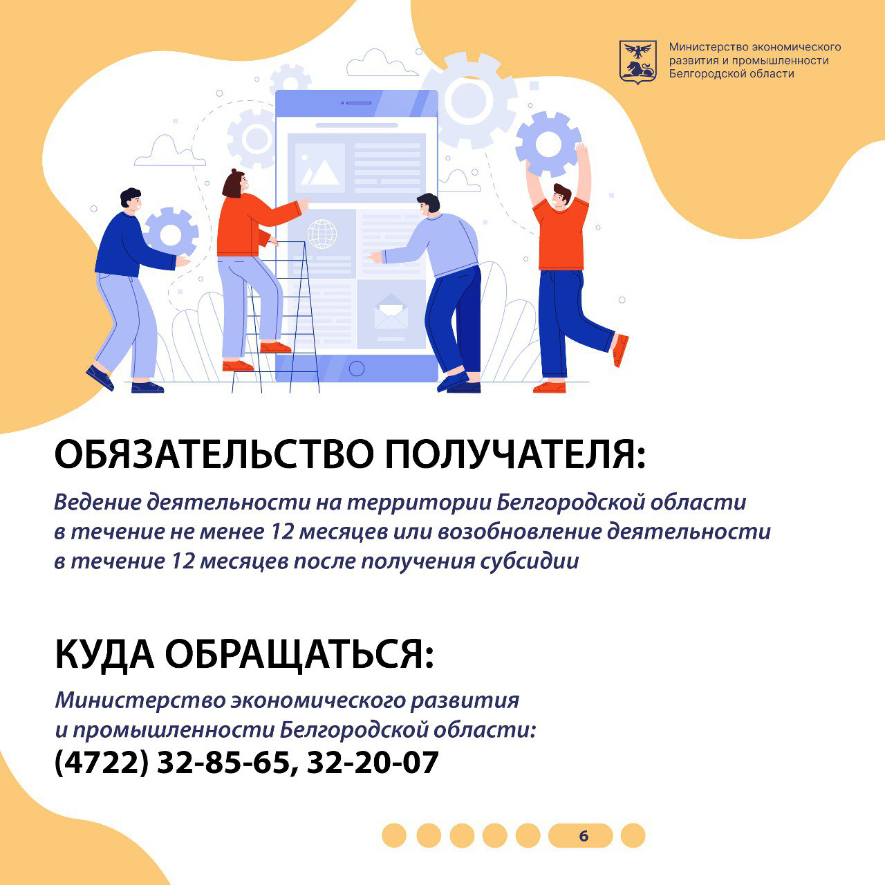 Ведение деятельности на территории Белгородской области в течение не менее 12 месяцев или возобновление деятельности в течение 12 месяцев после получения субсидии